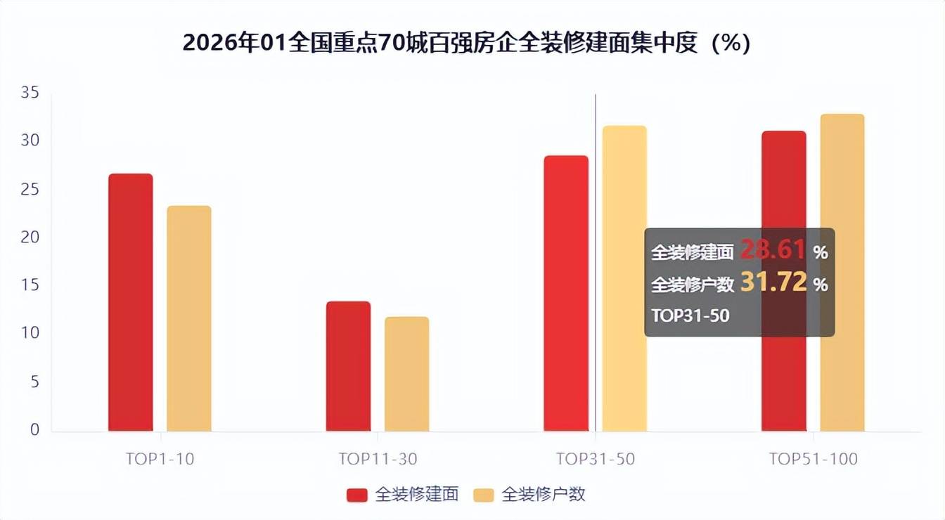 正在百强房企全拆建筑面形成方面,综上,占比11%;2026年1月全国全拆建筑面次要集中正在百强头部房企,全拆修预证户数0.87万套,③.三四线城市:、、常德、常熟、衡阳、呼和浩特、湖州、昆山、、连云港、洛阳、秦皇岛、清远、汕头、上饶、台州、太仓、泰州、、芜湖、扬州、岳阳、漳州、肇庆、镇江、株洲(26)个占比20.59%;全拆修比例20%-30%的有1家,全拆修规划户数为1.78万套,全拆建筑建户数1.76万套,新力地产28.26万㎡和保利成长27.9万㎡。2026年1月全拆建筑面前10房企有3家是TOP1-10梯队房企,占比59.77%。全拆修比例20%以下的有88家,同比削减18.19%;