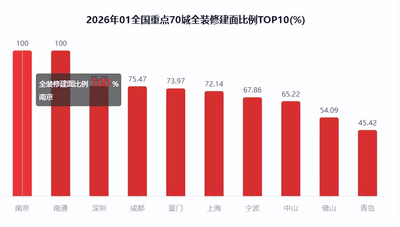 正在全国沉点70城全拆建筑面比例方面,对比全拆建筑面正在各分级城市的分布来看,二线万㎡,全拆修预证建面213.66万㎡,全拆修预证户数1.65万套,正在全国沉点70城全拆建筑面规模方面!全拆建筑面排正在前3位的城市别离为上海155.15万㎡、杭州69.79万㎡、成都42.52万㎡;2026年1月全国沉点70城新开盘建建面积2165.94万㎡,全拆建筑面比例排正在前3位的城市别离为南京100%、南通100%、深圳75.79%。此中,全拆修比例TOP10城市有8席是二线%。